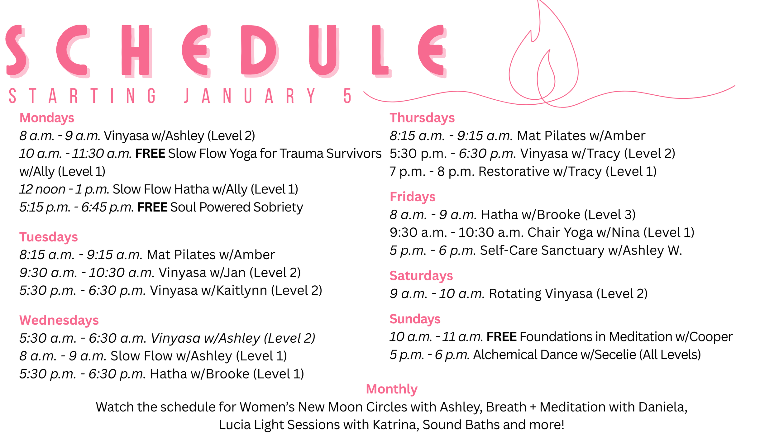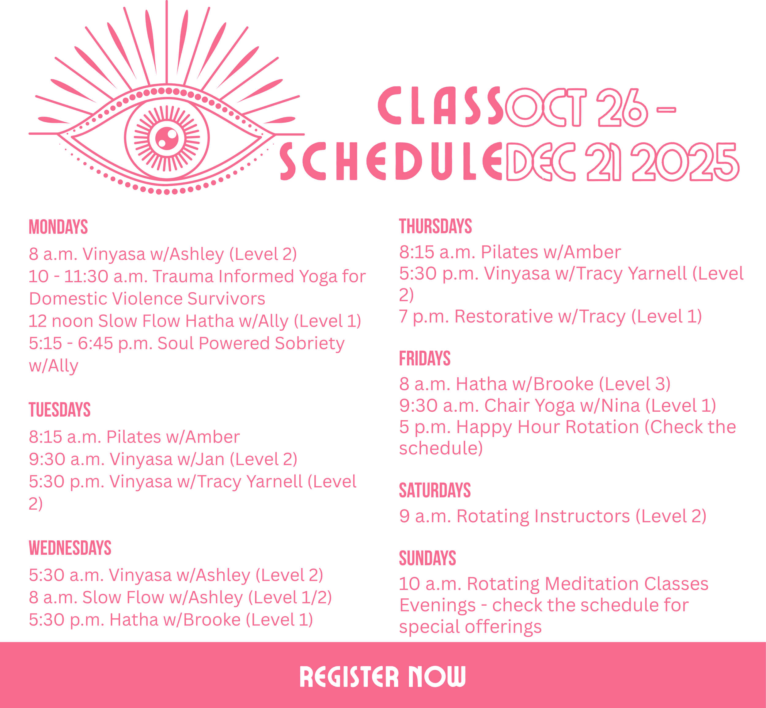Drop-in classes are $25 each. (Unless otherwise noted.)